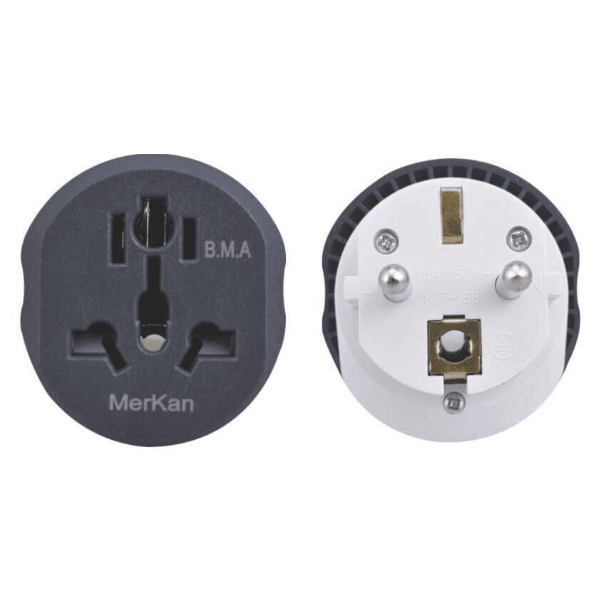 The KT-168 Travel Adapter allows you to plug your non-EU devices (with your standard plug) into the European outlets. It converts the shape of the plug to fit the EU-style socket while maintaining the required electrical current. This ensures that your devices are powered safely without the need for bulky, country-specific adapters.