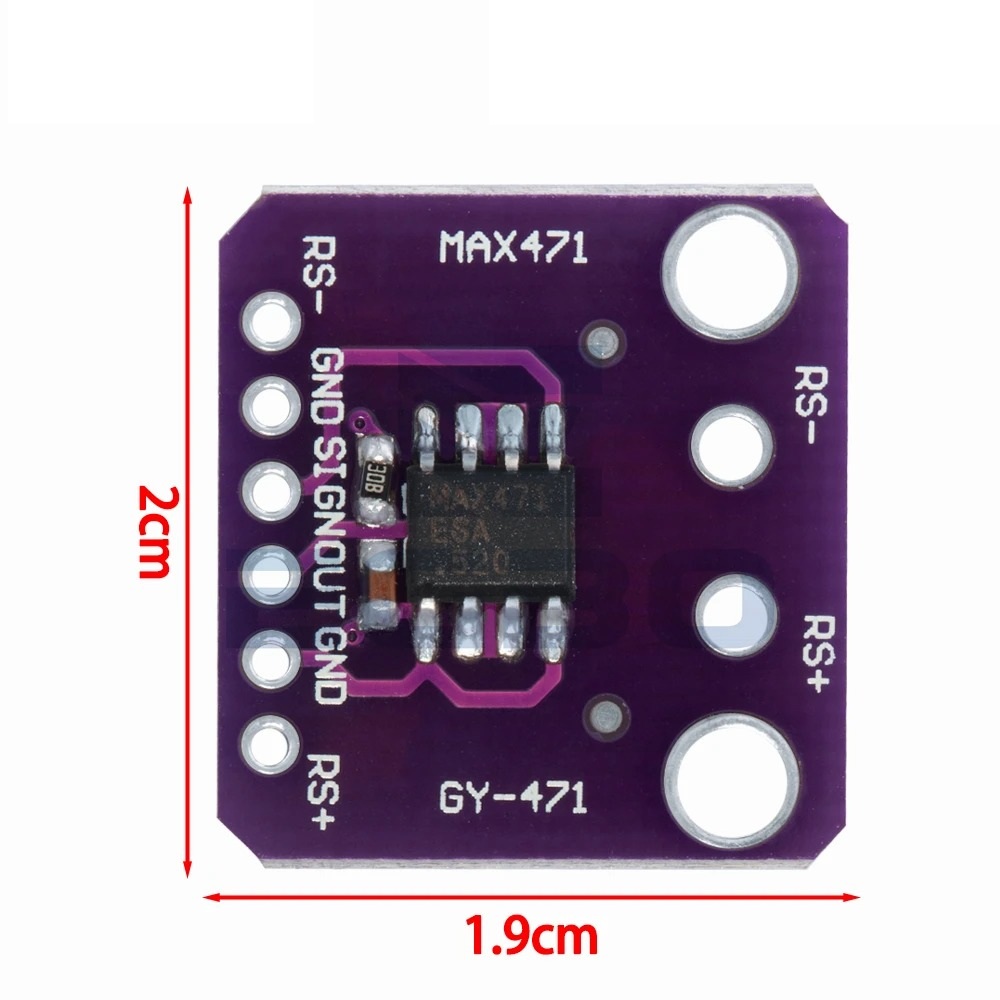Built around the MAX471 IC, this module provides bidirectional current sensing (both positive and negative currents) and outputs analog signals proportional to current and voltage.